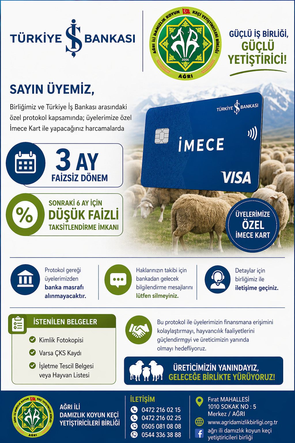 İmzalanan protokol kapsamında birlik üyeleri, İş Bankası’nın “İmece Kart” uygulamasından özel avantajlarla yararlanabilecek. Anlaşma çerçevesinde üreticilere ilk 3 ay faizsiz kullanım imkânı sunulurken, 6 aya varan düşük faizli taksitlendirme seçenekleri de sağlanacak. Ayrıca işlemlerden komisyon alınmaması ve ödemelerin hasat dönemine göre planlanabilmesi, üreticilerin mali yükünü önemli ölçüde hafifletecek. Bu desteklerin, üretimde sürdürülebilirliği artırması bekleniyor.
