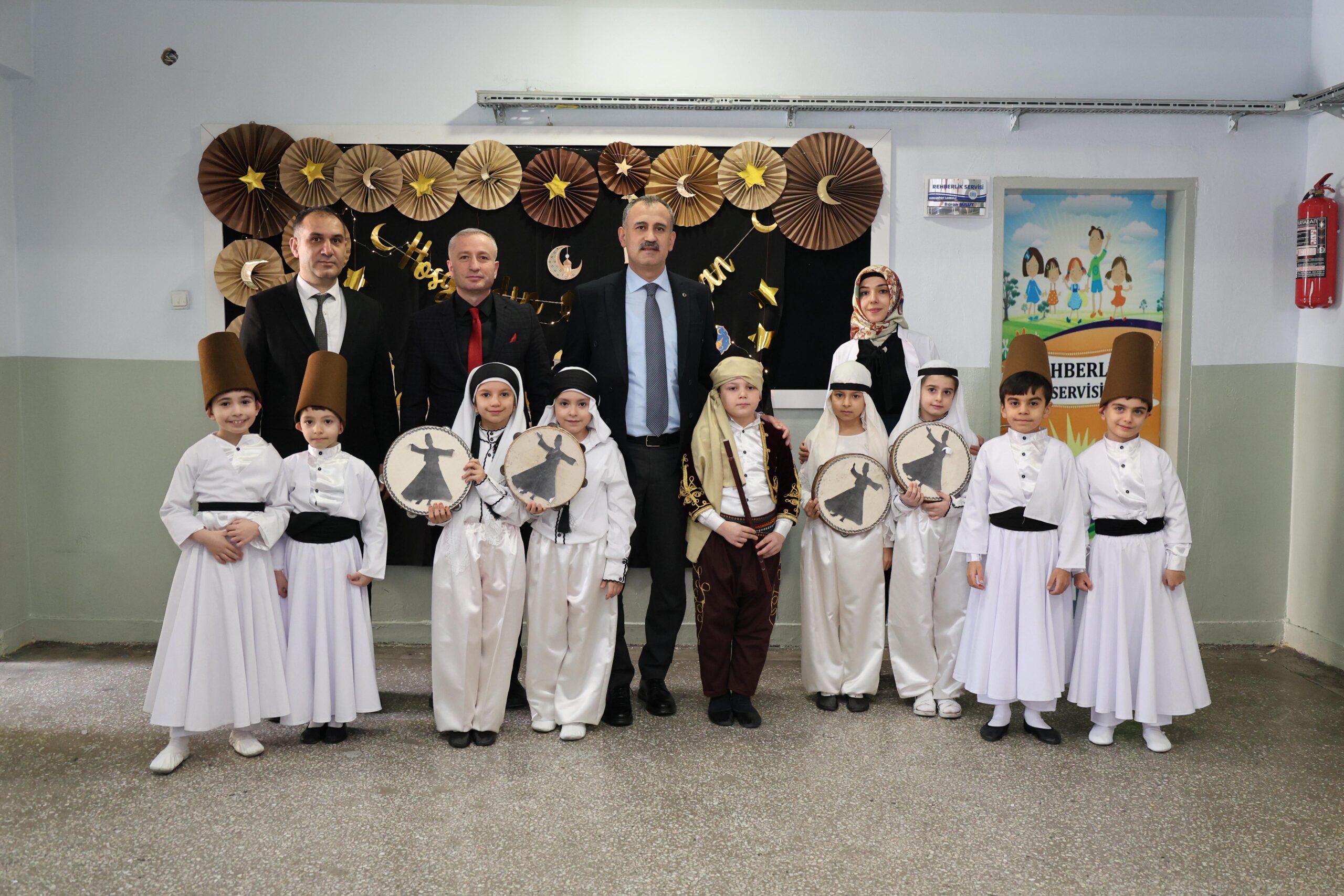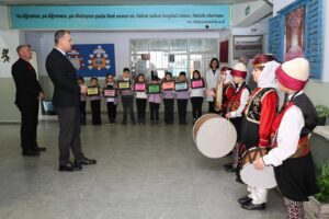 Geleneksel kıyafetler giyen öğrencilerin davul gösterisini izleyen Vali Bozkurt, semazen gösterisi ile ilahi dinletisini takip etti.