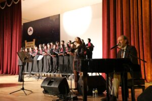 Konuşmaların ardından, koordinatörlüğünü Yücel Arzen Hacıoğulları’nın üstlendiği programda, Erol Parlak Güzel Sanatlar Lisesi öğrencilerinden oluşan koro çeşitli eserler seslendirdi. Hacıoğulları da sahnede seslendirdiği eserlere öğrenciler ve izleyiciler eşlik etti.