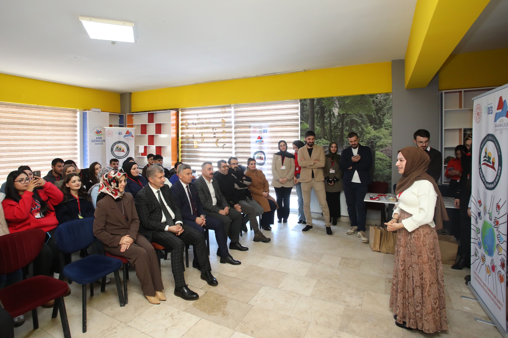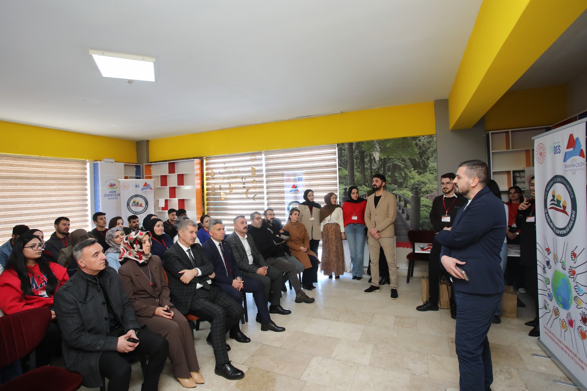 AİÇÜ Genç Ofis Merkezinde düzenlenen programa; Rektör Prof. Dr. İlhami Gülçin, Rektör Yardımcıları Prof. Dr. Yakup Karataş ve Prof. Dr. Hülya Akıncıoğlu, İSG Kurum Koordinatörü Doç. Dr. Pınar Baykan ile öğrenciler katıldı.