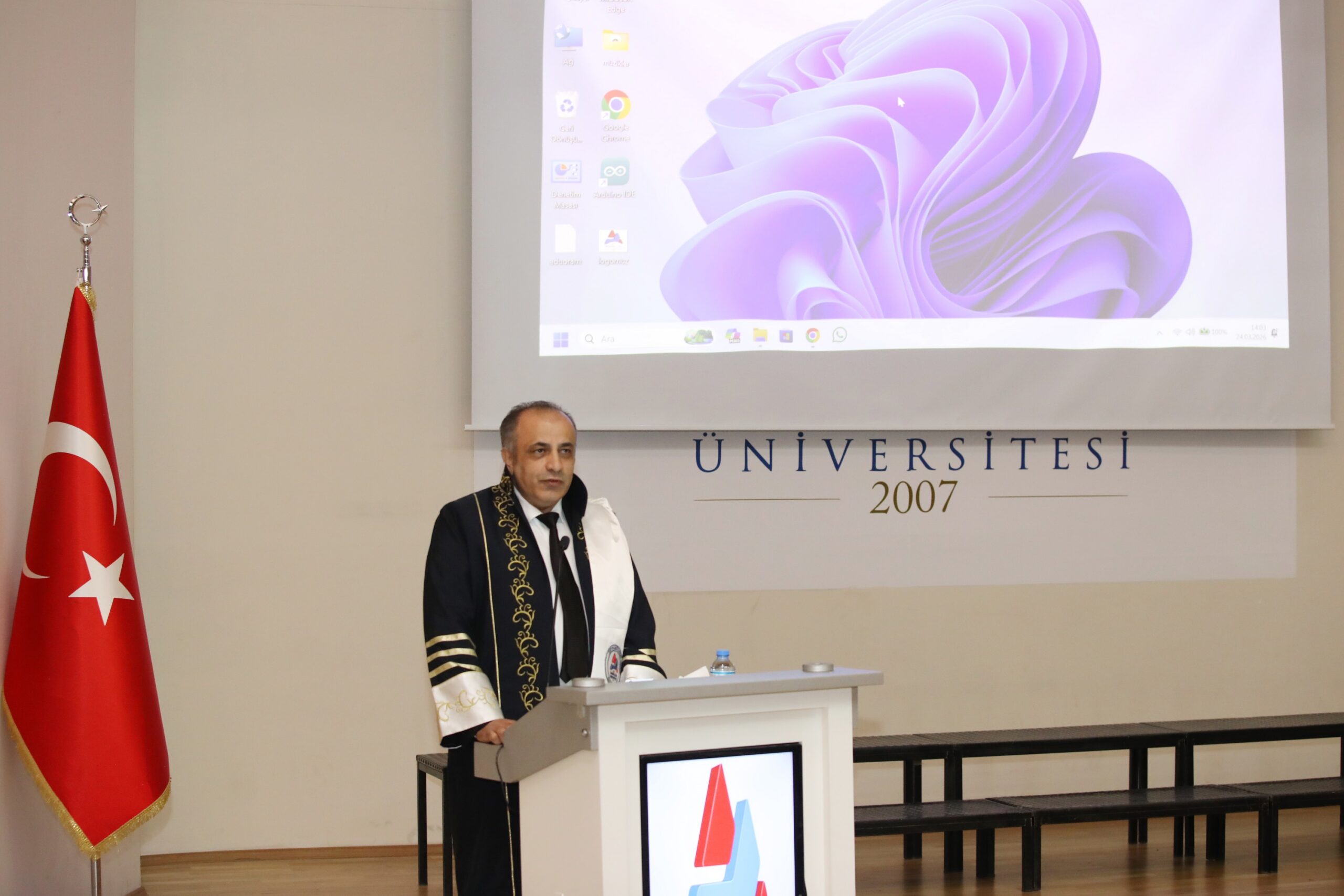 Prof. Dr. Gülçin, beyaz önlük giyme töreninin öğrenciler için hayırlı olması temennisinde bulundu. Prof. Dr. Gülçin, başta Ağrı’da ve AİÇÜ’de görev yapan hekimler olmak üzere tüm sağlık çalışanlarının 14 Mart Tıp Bayramını kutladığını ifade etti.