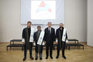 Törende, Tıp Fakültesinde göreve yeni başlayan akademisyenler ile doktor öğretim üyesi ve doçent unvanına atanan akademisyenlere cübbe giydirilirken, tıp fakülteleri arasında akademik yayın performansı değerlendirmesinde ilk 5’te yer alan AİÇÜ Tıp Fakültesi akademisyenlerine teşekkür belgeleri takdim edildi.