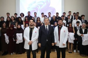 Beyaz önlük giyen öğrencileri tebrik eden Prof. Dr. Gülçin, “Bugün giydiğiniz beyaz önlük, yalnızca mesleki eğitiminizin bir simgesi değil; aynı zamanda insan hayatına duyulan saygının, sorumluluğun, fedakârlığın ve vicdani duruşun temsilidir. Hekimlik, bilgi kadar merhametin, bilim kadar insan sevgisinin de gerekli olduğu kutsal bir meslektir. Sevgili öğrencilerimiz, bugün attığınız bu adım, uzun ve özveri gerektiren bir yolculuğun başlangıcıdır. Giyeceğiniz beyaz önlük, sizlere her zaman doğruluğu, sabrı, adaleti ve insan hayatını her şeyin üzerinde tutmayı hatırlatacaktır” diye konuştu.