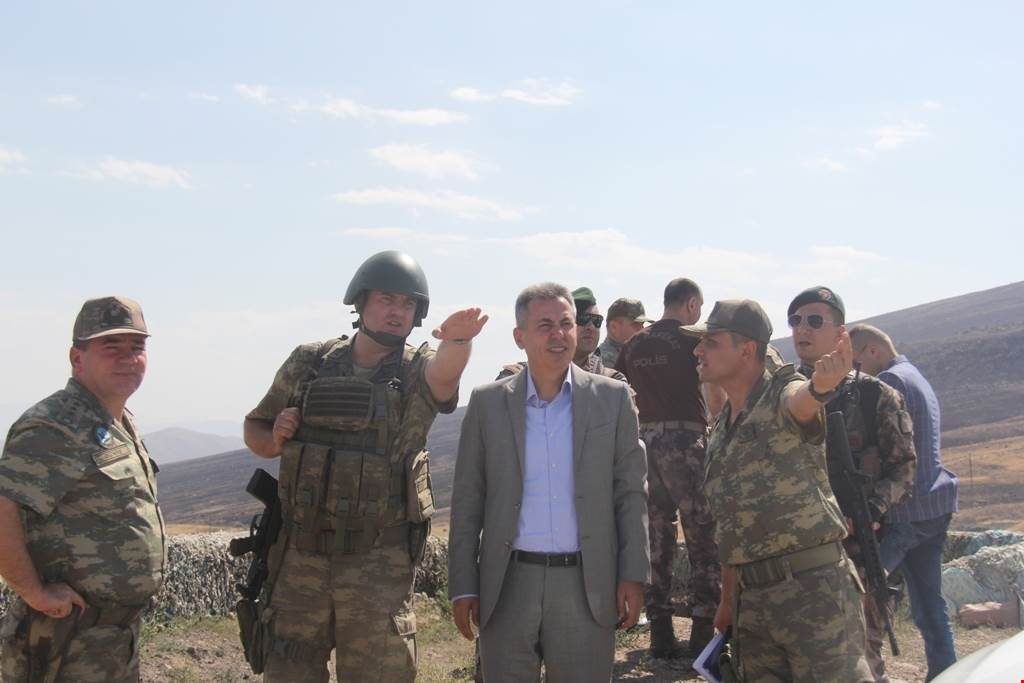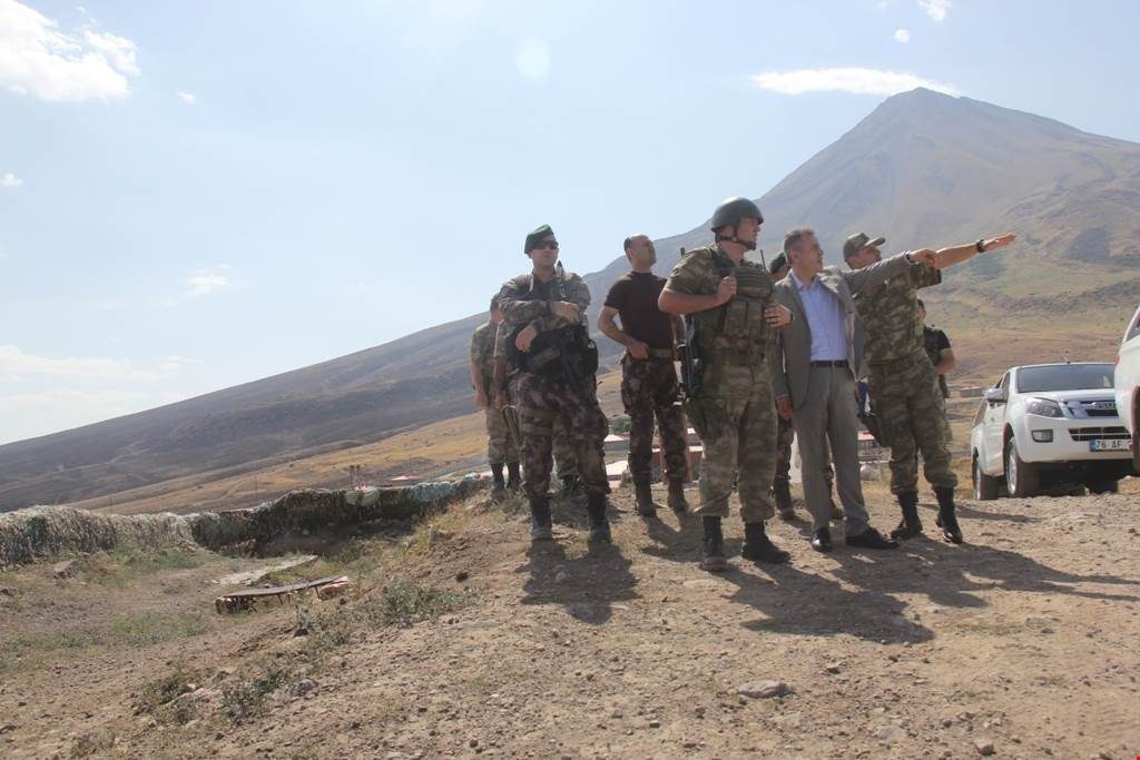 İl Emniyet Müdürü Kenan Yıldız ve İl Jandarma Komutanı Gökhan Şahin ile birlikte sınır bölgesine giden Vali Elban, Milli Savunma Bakanlığınca TOKİ’ye yaptırılan Ağrı Sınırındaki Güvenlik duvarı inşaatını inceledi.