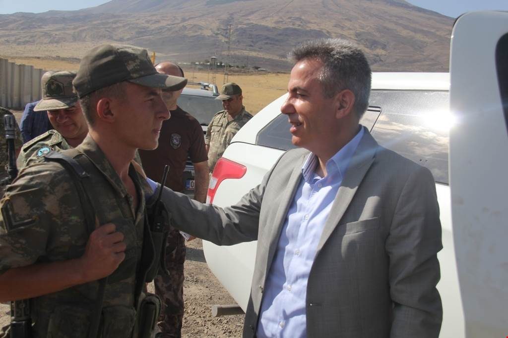 Güvenlik duvarı ile ilgili yetkililerden bilgi alan Elban, 4. Hudut Tabur Komutanlığını ziyaret ederek askerlerle birlikte yemek yedi.