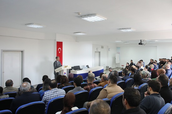 Fen Edebiyat Fakültesi Konferans Salonunda gerçekleştirilen toplantıya AİÇÜ Rektörü Prof. Dr. İlhami Gülçin, Rektör Yardımcıları Prof. Dr. Erdal Yılmaz ve Prof. Dr. Hülya Akıncıoğlu ile genel sekreter ve genel sekreter yardımcıları, daire başkanları, şube müdürleri, fakülte ve yüksekokul sekreterleri ile birimlerde görev yapan idari personel katıldı.