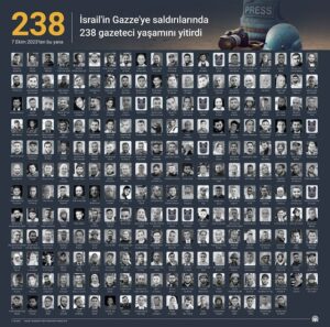İsrail’in 7 Ekim 2023’ten bu yana Gazze’ye yönelik sürdürdüğü insanlık dışı saldırılarda, 238 gazeteci meslektaşımızın yaşamını yitirmesi, basın özgürlüğü ve insan hakları açısından kabul edilemez bir suçtur.