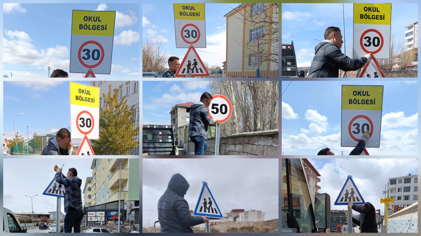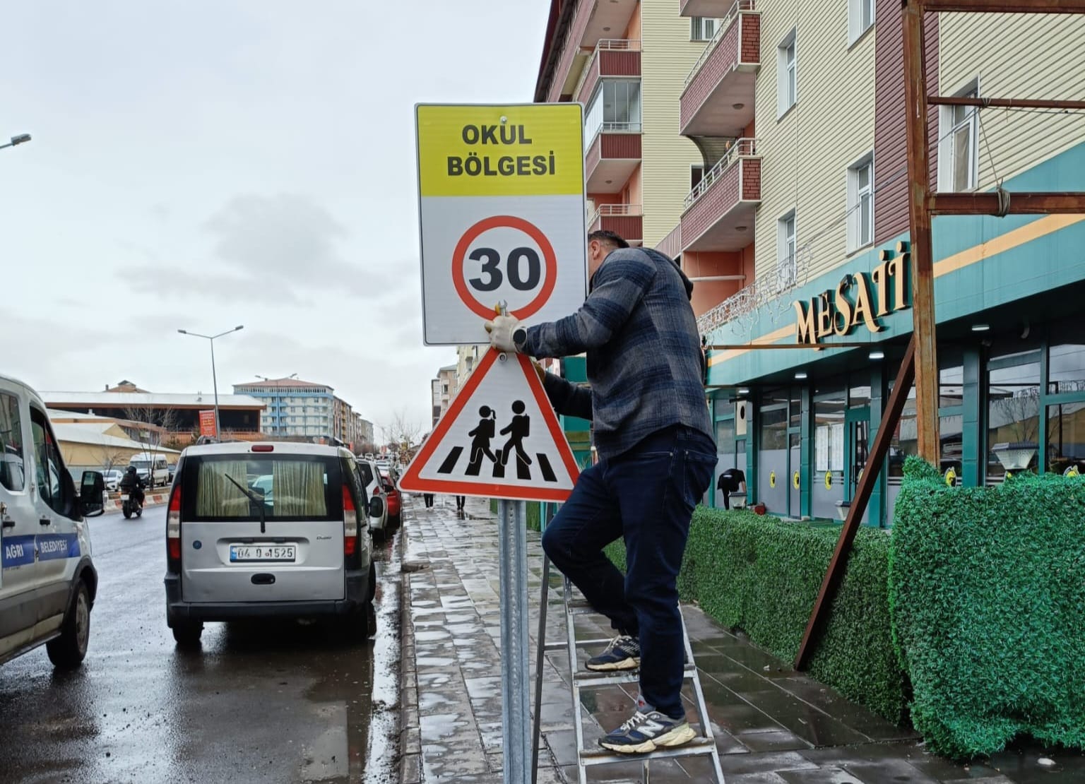 Ağrı Belediyesi Trafik ve Ulaşım Hizmetleri Müdürlüğü tarafından kent genelinde trafik güvenliğini artırmaya yönelik uyarı levhası çalışmaları gerçekleştirildi.