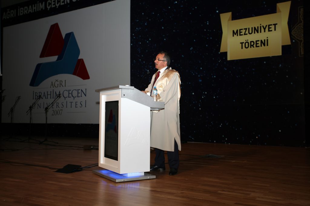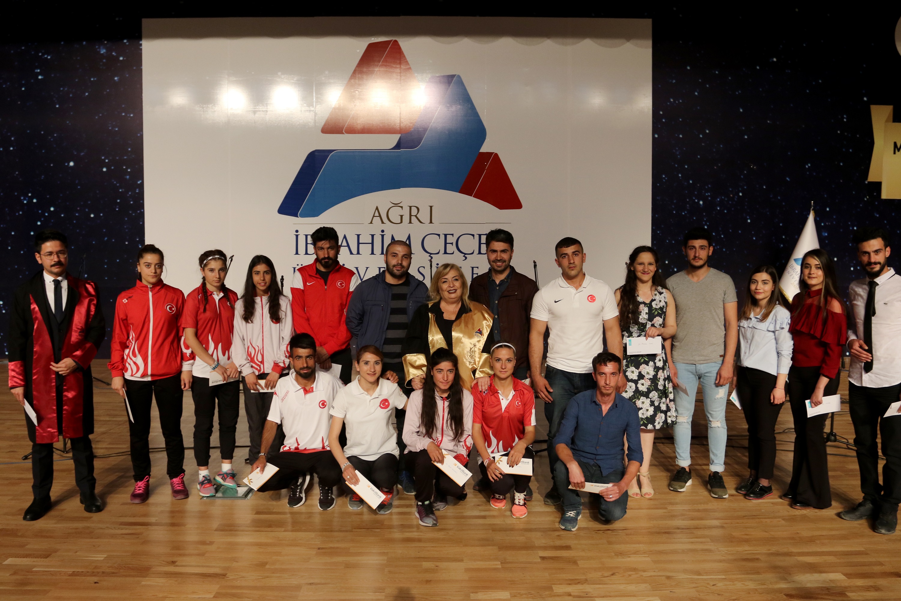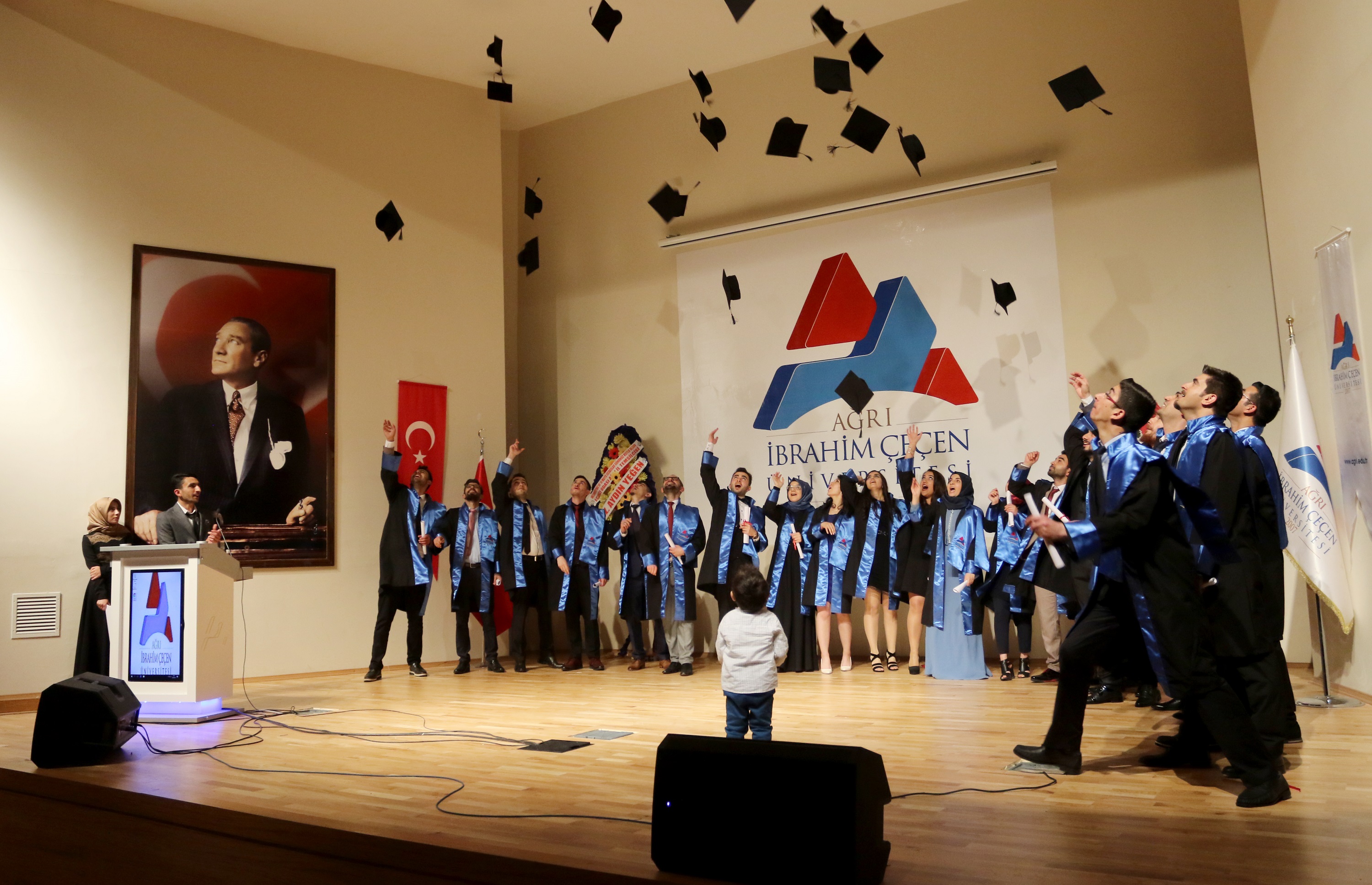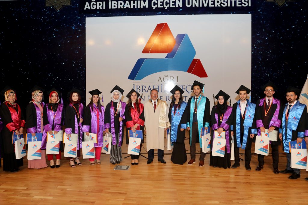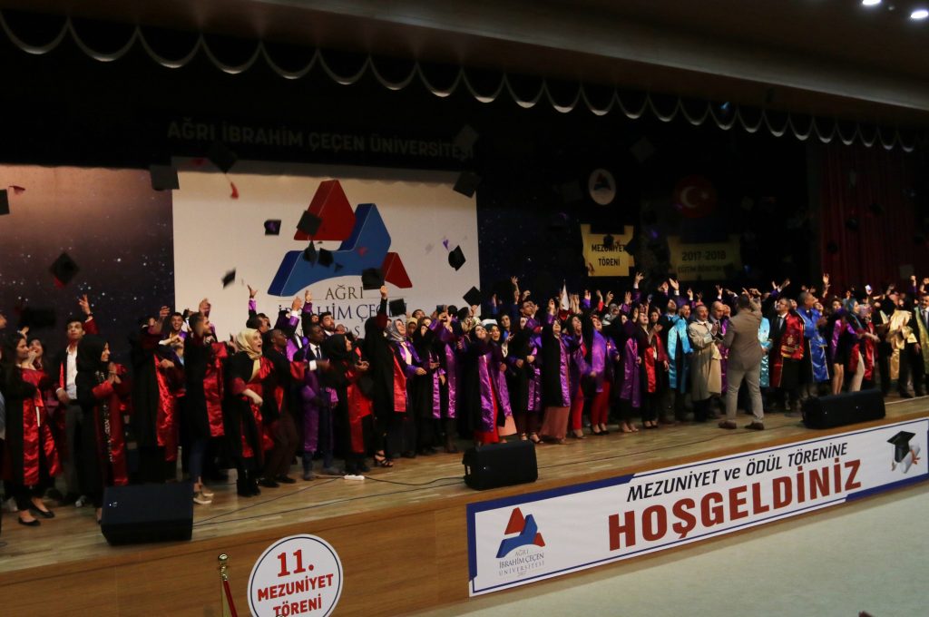 Ağrı İbrahim Çeçen Üniversitesinde2017- 2018 eğitim öğretim yılı mezuniyet ve ödül töreni programı yapıldı. Kültür ve Kongre Merkezi Osmanlı Konferans Salonunda gerçekleşen programa Ağrı Valisi Süleyman ELBAN, Rektör Prof. Dr. Abdulhalik KARABULUT, Ağrı Cumhuriyet Başsavcısı Tunay PULÇA, Ağrı Ağır Ceza Mahkemesi Başkanı Basri ALAGÖZ, Eleşkirt Belediye Başkanı Sabahattin SARI, IC Vakfı Müdürü Sayın Dr. Meral DİNÇER, Dekanlarımız, Kurum Amirleri, idari ve akademik personelimiz ile öğrenciler ve aileleri katıldı. Düzenlenen Mezuniyet ve Ödül Töreninde, Üniversitemizden dereceyle mezun olan öğrencilerimiz ile kültür, sanat ve spor dallarında üniversitemizi başarıyla temsil eden öğrencilerimiz ödüllendirildi.
