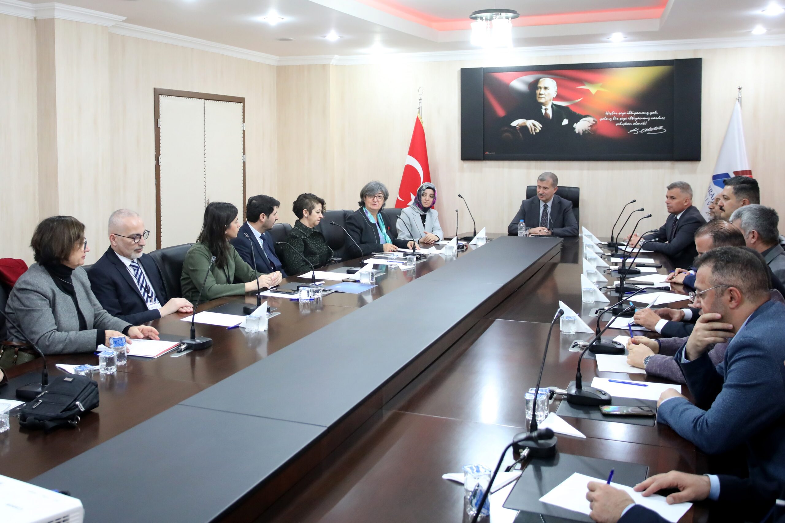 FEDEK Değerlendirme Takımı AİÇÜ Fen Edebiyat Fakültesinde gerçekleştirdiği değerlendirme sürecinin ardından çıkış bildirisini sunmak üzere AİÇÜ üst yönetimi, Fen Edebiyat Fakültesi yönetimi ve ilgili bölüm temsilcileri ile bir araya geldi.