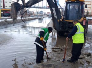 Ağrı Belediyesi Su ve Kanalizasyon Müdürlüğü ekipleri, hava sıcaklıklarının artmasıyla birlikte eriyen kar sularının oluşturduğu olumsuzluklara karşı kent genelinde çalışma yürütüyor.