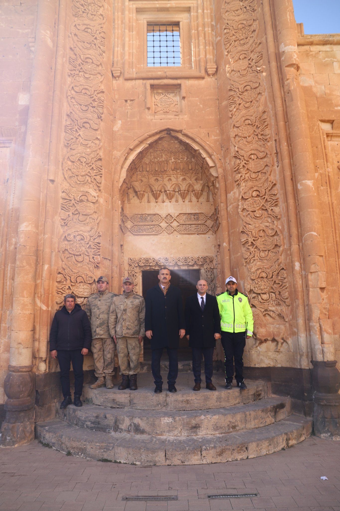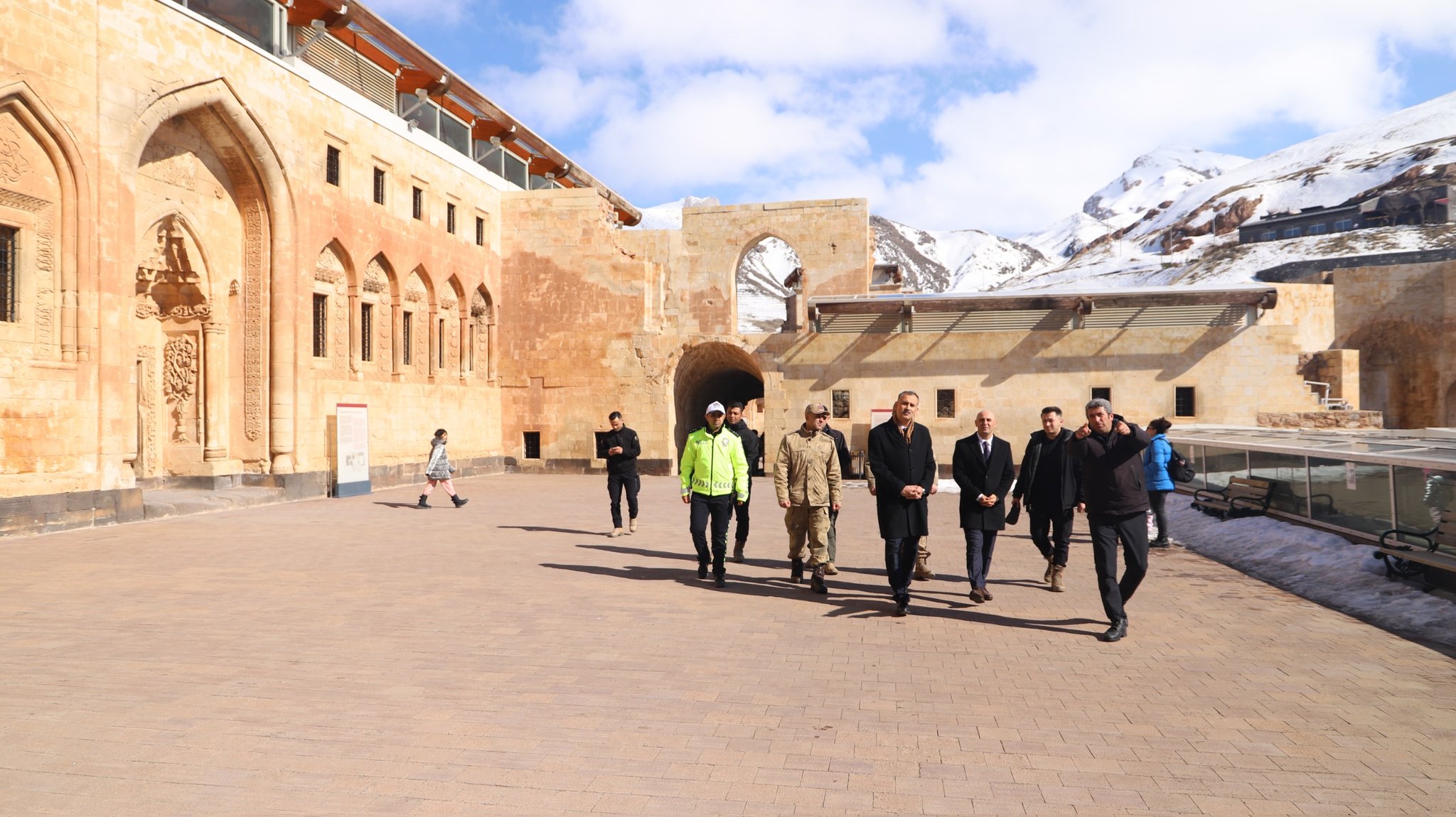 Vali Dr Önder Bozkurt Doğubayazıt ilçesinde İshak Paşa Sarayı , Erzurum Vakıflar Bölge Müdürlüğü tarafından planlanan restorasyon sürecine ilişkin çalışmalar hakkında bilgi aldı, sahada yapılacak teknik çalışmalar hakkında görüş alış verişin de bulundu. ziyarette, Bayazid Camii, Ahmed-i Hani Türbesi, Ahmed-i Hani Kent Müzesi, Geleneksel Doğubayazıt Evi ve Tarihi Hükümet Konağı’nı da ziyaret etti. Bu alanlarda yürütülen faaliyetleri yerinde inceleyerek yetkililerden detaylı bilgi edindi.